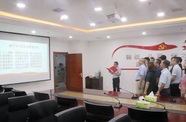 公司黨支部和工會向全體黨員干部職工倡議:一是增強政治自覺,自覺把厲行勤儉節約、反對鋪張浪費的理念內化于心、外化于行;二是帶頭做好表率,嚴格執行公務活動用餐標準,在家庭傳承勤儉節約的傳統美德,樹立良好家教家風;三是強化宣傳引導,樹立科學飲食、理性消費新理念,養成崇尚節約、厲行節約的良好習慣,堅決抵制“舌尖上的浪費”。